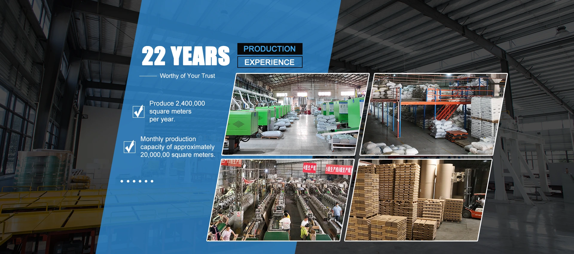 စက်ရုံအကျယ်အဝန်း 166,50 စတုရန်းမီတာကျော်နှင့် လစဉ်ထုတ်လုပ်မှုပမာဏ ခန့်မှန်းခြေအားဖြင့် စတုရန်းမီတာ 20,000,00 ဖြင့် တစ်နှစ်လျှင် စတုရန်းမီတာ 2,400,000 ထုတ်လုပ်နိုင်သည်။