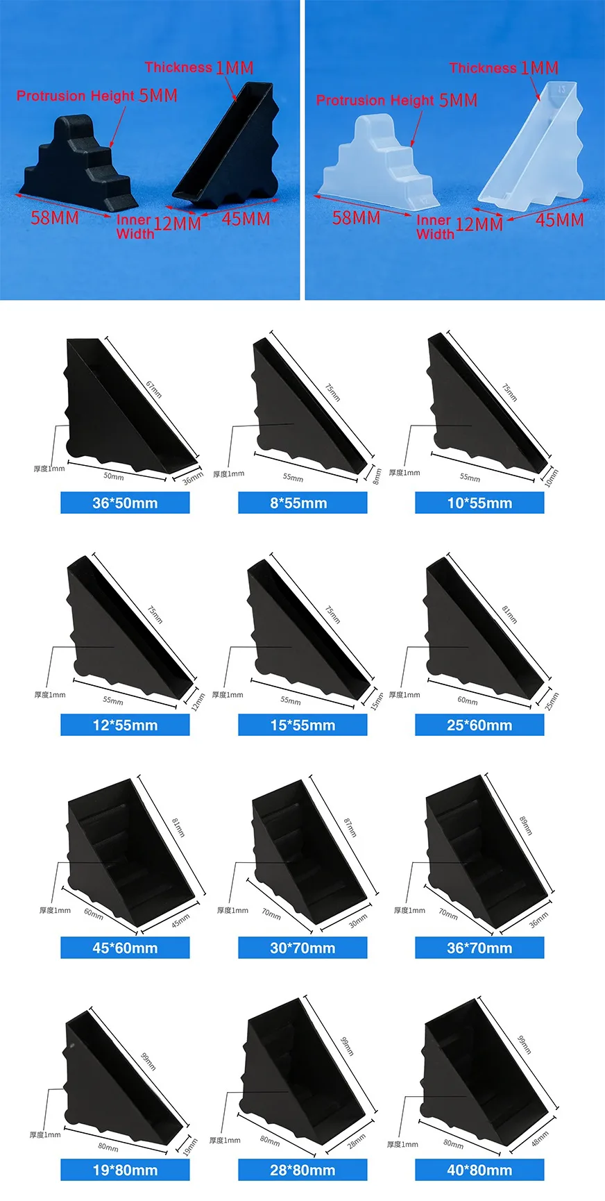 ဓာတ်ပုံဘောင်များအတွက် ကောင်းမွန်သော အဝိုင်းထောင့် ပလပ်စတစ် အကာအကွယ်အစွန်း။